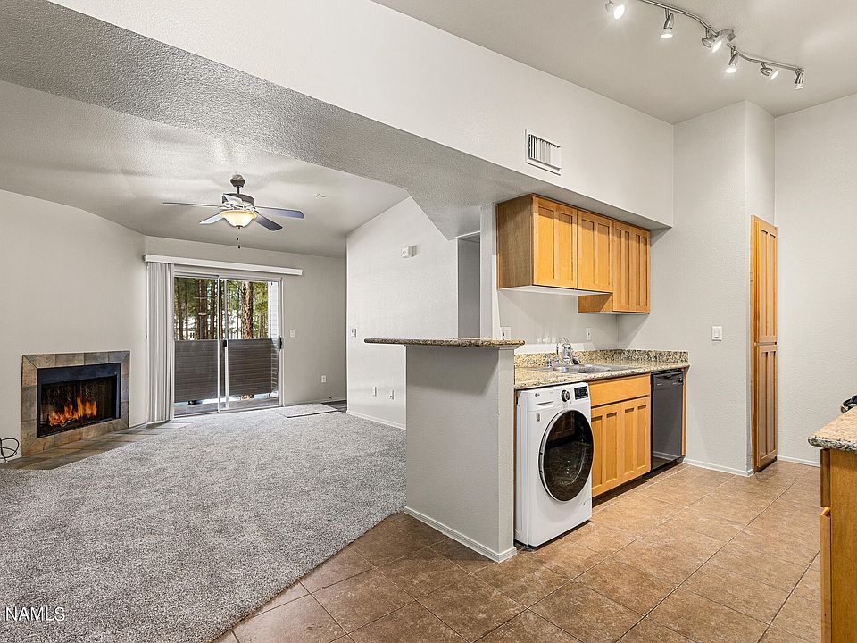 Nestled in the heart of Flagstaff, this charming 2-bed, 2-bath corner unit is a rare gem you won't want to miss. Location is everything, and this property is perfectly situated, just minutes away from Northern Arizona University and the vibrant downtown area. As you step inside, you'll immediately notice the cozy fireplace, a unique and coveted feature in this community. Enjoy the fresh mountain air on the large covered front deck, perfect for sipping your morning coffee or hosting gatherings with friends. The interior boasts granite countertops, brand new carpeting, and a fresh coat of paint, making it move-in ready. With HOA maintenance taken care of, your worry-free living experience awaits. Don't let this opportunity to own a piece of Flagstaff's charm and convenience slip away.