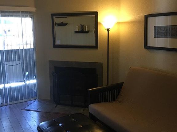 Wonderfully furnished 2 bedroom 2 bathroom condo available immediately! Don't miss out on this upgraded unit. Ceramic tile in the kitchen and bathroom areas with wood floor though out the living area and bedroom. Granite counters and upgraded cabinetry. Private covered deck. Wood burning fireplace, 1 covered assigned parking space. Owner pays water and trash