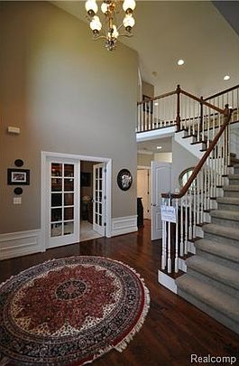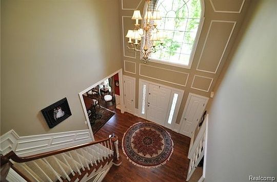 Beautifully maintained colonial located near commons area in the Stoney Creek Ridge North Subdivision. This four bedroom home features custom woodwork throughout, coffered ceiling, crown molding, built-ins and bead board surround. Beautiful two story foyer and great room with bridge overlook. First floor with 9' ceilings and hardwood flooring. Formal dining room with bay window, French doors into the office with coffered ceiling and Hunter Douglas blinds throughout. Large kitchen with center island, built-in appliances, bay sliding door to the brick paver patio and is open to the two story great room with gas fireplace. Master bedroom with walk in closet and master bath with jetted tub and separate shower. Finished lower level with rec room, full bathroom, bar area and built in storage shelves. Professionally landscaped, two car attached garage and sprinkler system. Rochester Schools.