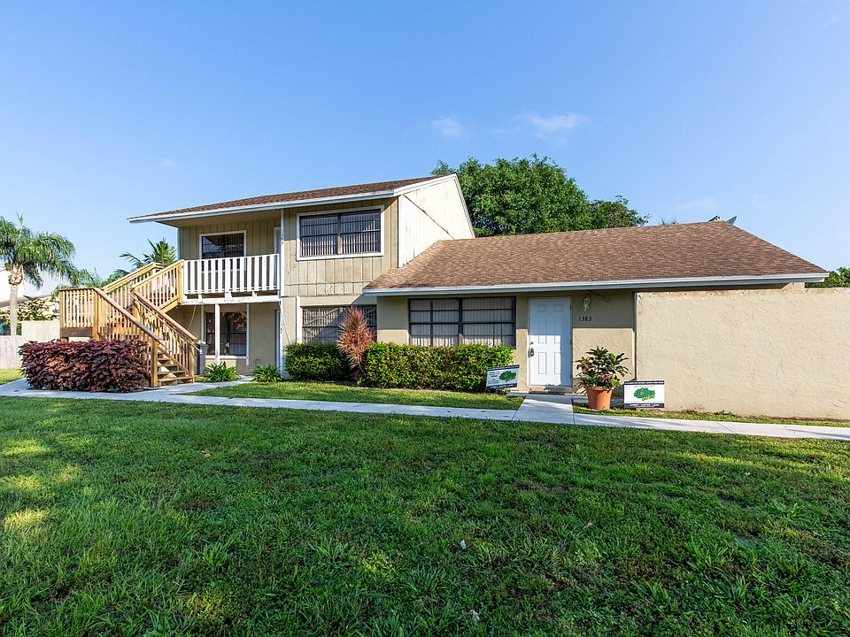 First floor apartment with nice sized fenced yard in back. This unit overlooks water .Completely tiled, this 2 bedroom and 2 bathroom home offers a large great room and nice sized kitchen with full sized washer and dryer. Located in the heart of Wellington, this home is freshly painted and ready to move in. 2020-09-11