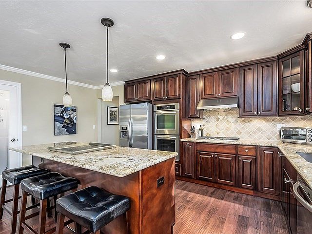 - KITCHEN FEATURES: 220 Volt Outlet, Dishwasher, Eat In Kitchen, Garbage Disposal, Microwave, Breakfast Nook, Gas Range/Cooktop, Pantry, Ice Maker Hookup, Updated Kitchen, Breakfast Bar, Island, Counter - Stone, Self-Cleaning Oven