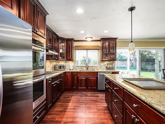 This beautifully updated Shadowbrook home is located in South Livermore near top-rated schools, parks, shopping and Hwy 84 and 580. Chefs kitchen features slab granite, cherry cabinets, gas cook-top, large island and stainless appliances. The hardwood floors carry though the Entry, Kitchen, Dining and Family Room. The formal Living Room can be converted to a 4th bedroom if needed. Other features include, oversize master walk-in closet,updated baths, vaulted ceilings, plantation shutters, crown molding ,open floor plan and electric car charger. Recently added front stone work and landscaping, large rear park-like yard with fruit trees,expansive lawn, vegetable garden beds, and two storage sheds.