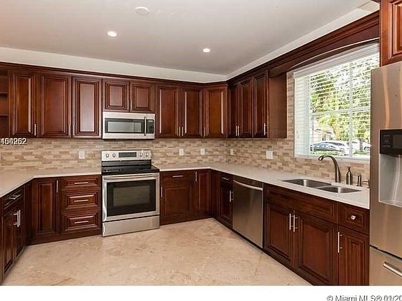 Beautifully remodeled town home in gated community close to beach and Downtown Hollywood. Travertine throughout first floor, open concept kitchen with brand new stainless steel appliances, gorgeous wood cabinets, quartz counter tops, soft close drawers, smooth ceilings, impact windows & French doors. Bathrooms all beautifully remodeled. Private courtyard perfect for entertaining. West Lake Village has tennis courts, heated pools, Jacuzzi, exercise room, clubhouse, tot lot and 24-hour security.