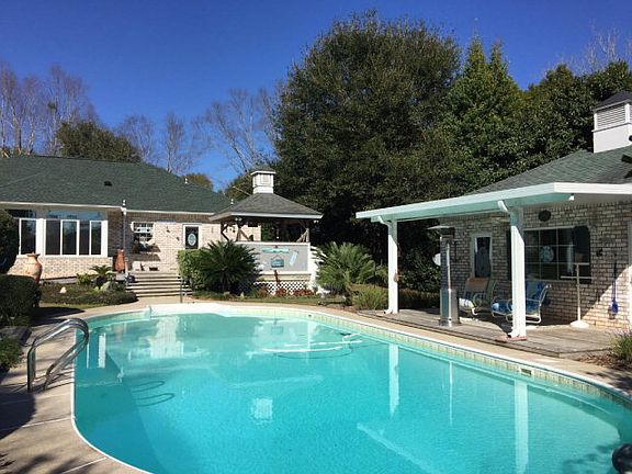 ENTERTAINERS PARADISE!!! This beautiful home on over 4 acres is the perfect place for those looking to sit back and enjoy the peace and quiet but with space to keep all your toys, horses, boats, you name it! Main house features 3 bdr/2 ba, new roof in 2016, new HVAC in 2015 and a gorgeous sunroom with new hurricane rated windows to sit and enjoy the spectacular views. The pool house is well over 400 sq ft, heated and cooled, with a bedroom and it's own kitchen/dining area and full bath. Guests can also enjoy the views from their own spacious covered patio. Entertaining is a must with the amazing cabana and grilling area! There's also a huge pool deck for sunning by the water. And then the workshop - perfect for a business owner. 27' x 36' of enclosed workshop with 3 phase power, all heated and cooled as well as an office and bathroom. Two open overhangs offer the perfect place to store your boats or RV's or with easy modifications it would make a great barn! Truly amazing!