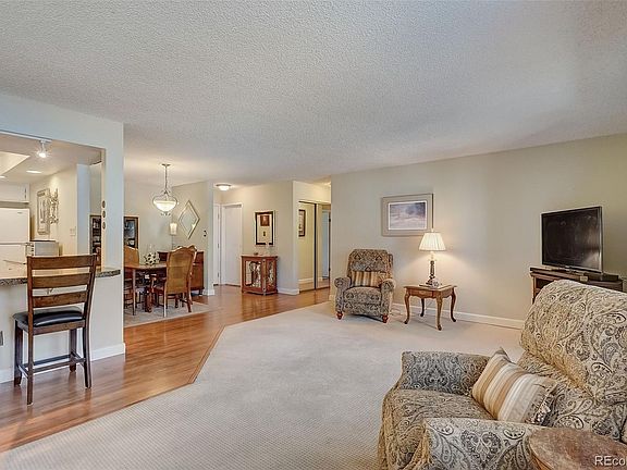Best value in Heather Gardens! This thoughtfully designed condo features 2 bedrooms and 2 bathrooms, providing over 1200 square feet of comfortable living space. Conveniently located on the first floor, this quiet unit provides quick access to the building entrance, surface parking, and a secure parking garage. If your pup is crazy about morning walks or you dislike waiting for the one elevator in the building, this main-floor condo is the perfect place to call home! As you enter through the front door, you will notice that the open floor plan allows for peaceful views of the beautiful grounds. This move-in ready unit boasts an updated kitchen with a breakfast bar, two renovated bathrooms, a formal dining room, and a laundry room with ample storage. A private lanai off of the living room offers a tranquil retreat to enjoy morning coffee or relax with a book. Prepare to fall in love with the primary bedroom, which is spacious enough to accommodate a king-size bed plus additional furniture pieces. It also boasts an impressively large walk-in closet! This sought-after building features secured entrances, secured garage parking, and the unit also comes with a private storage closet. Heather Gardens is a 55+ active community with many amenities, including an indoor/outdoor pool, sauna, hot tub, tennis/pickleball courts, multiple clubs/activities, a restaurant, trails, a fitness center, and a 9-hole executive golf course. Seville is a sought-after enclave within Heather Gardens, offering exclusive access to additional amenities, including a pool, tennis/pickleball courts, and a lovely koi pond. This vibrant community is conveniently located near Cherry Creek State Park, shopping, restaurants, medical facilities, and more. Don't miss this rare opportunity to enjoy easy, resort-style living at an affordable price!