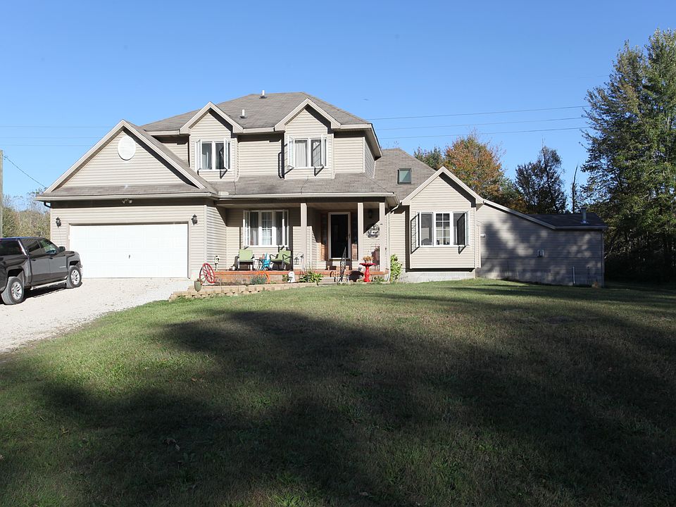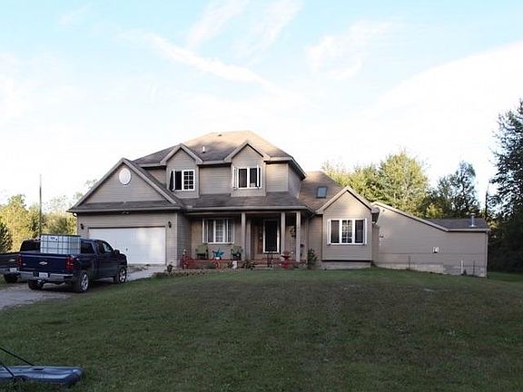 This home boasts a large open and flowing floor plan. Large Vaulted ceilings in great room, hard surface throughout the 1st level with refinished hardwood and tile. Large kitchen with lots of cabinet space, large island and all the appliances stay. Two bedrooms have brand New hardwoods. Large Master suite completely remodeled with new tile and with jetted tub, his and hers sinks and 2 very large walk in closets. Weather the Michigan winter with a huge heated indoor pool and a large hot tub. Or you can take advantage of the serine country setting on your own 7 acres with fun to explore and with wildlife galore and a portion of the backyard is fenced. Large oversized 2 car garage and a shed for all your toys. New gutters. Professionally painted. The pool is updated with UV light System. You have to haul water. Otherwise there is a well, sulfur is high.