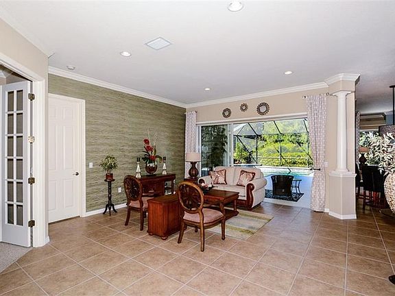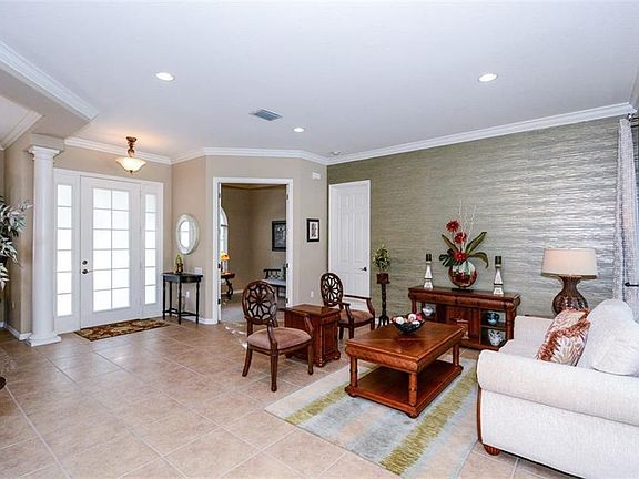 Reduced! If there was a Model Home in Greenbrook, this would be it! Move in ready, immaculate home with brand new AC feels like your own private resort. High ceilings, crown molding and an elegant dining room flanked by 10' columns complete its charm. Family and friends will gather around the saltwater pool with its 2 covered lanais, while you entertain for 2 or 20 in the open kitchen with a chef's island and stainless appliances. Slide open the patio doors and they completely disappear bringing the outdoors right into the family room. Your friends will gather around the built-in entertainment center on Super Bowl Sunday, dipping chips into salsa while chili simmers on the stove. After a long day, imagine yourself unwinding in the garden tub while your cares melt away. Or when you need your own quiet space, retire to the intimate den to relax and recharge. Take a sunset walk on the nature area path and watch a great heron as she hunts for her dinner. Ride your bike, run or walk the miles of trails all the way into nearby Summerfield. Just a short walk away, both you and your family will love Adventure Park with its playgrounds, dog park, roller hockey rink and volley ball court. Host a grand get-together for friends under the covered pavilion and pick teams for an evening game in one of the 2 soccer fields. Your home will be both your private oasis and a place your friends and family will enjoy with you. AC is brand new and Stainless steel appliances are only 2 years old! Furnishings available.