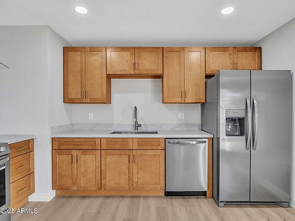 Step into this beautifully remodeled home, where every detail has been thoughtfully curated. The kitchen—features warm Honey Shaker cabinets paired with stunning Calacatta Elysio quartz countertops, creating a perfect balance of charm and sophistication. Brushed nickel fixtures add a sleek finishing touch, complementing the Frigidaire appliances designed for both style and functionality.