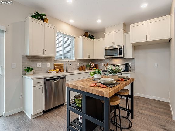 Incredible new construction by D.R. Horton! Enjoy Tigard shopping and dining at Progress Ridge or Murray Hill shopping centers as well as wonderful nature trails nearby! This striking Glacier two-story townhome features 3 bedrooms, 2.5 bathrooms, an attached garage, and offers 1,555 square feet of space with extended flooring. Past the entryway, the space opens into a seamless and sparkling great room with a fireplace that flows into the kitchen and dining area. Foodies will rejoice in the chef-inspired kitchen that features solid quartz countertops with full-height tile backsplash, a spacious pantry, and stainless-steel appliances. The upstairs features a lovely tech niche, and the laundry room for added convenience. Waltz around the spacious primary suite, which holds a spacious walk-in closet and double vanity. The second and third bedroom are situated at the back of the home by the secondary bathroom, offering the flexibility to create a home gym or office. Office open Saturday to Wednesday, 9:30am - 4:30pm. Receive a closing cost credit with use of builder’s preferred lender, reach out for more details. Photos are representative of plan only and finishes may vary as built. Come visit Scholls Meadow and claim your Glacier today!