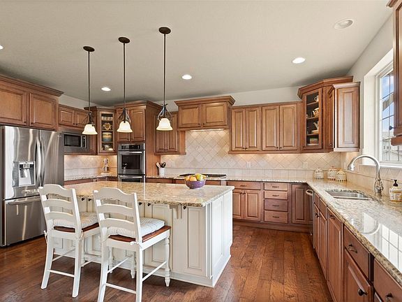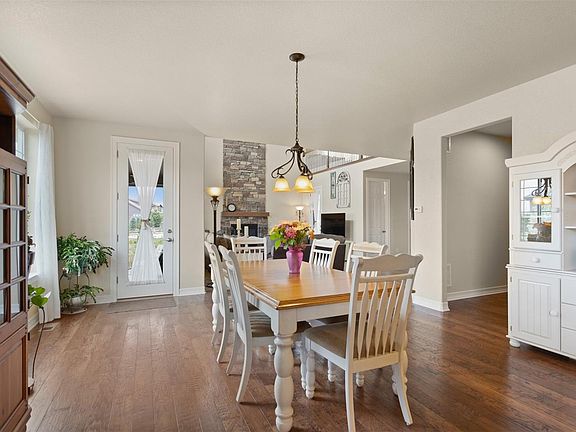 HUGE price reduction! This is a must see! Move in ready, clean from top to bottom! The open floor plan and stone wrapped turret is immediately inviting. Spacious kitchen features high-end cabinets, double oven, gas range, expanded island and over-sized pantry. Family room's cathedral ceilings and fireplace with stone to the ceiling is airy and spacious with natural light. From the curved staircase, extended hardwood floors and stately dining room, this house makes a statement! French doors lead to the private office with side patio. Double doors to the master suite with two closets including spacious walk-in, tray ceiling and five-piece bath with heated floors. Basement features large windows and terrific ceiling height for your custom finish. Extra large professionally landscaped lot! Great location with trails leading to McKay Lake, pool and more as well as easy access to highways, schools, shops and restaurants!