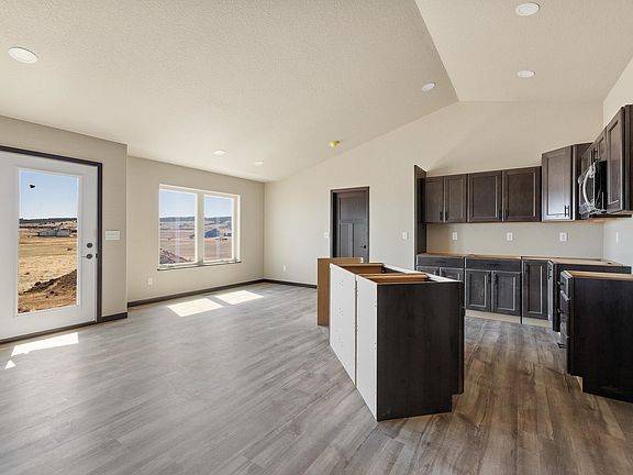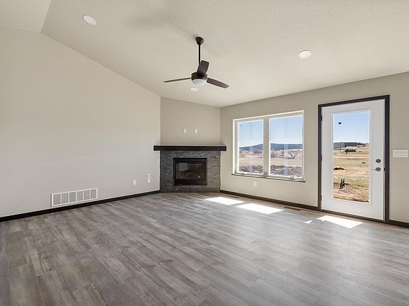 Listed by Matt Newton, Keller Williams Realty Black Hills-Spearfish, 605-545-4248. Stunning VIEWS!!! Gorgeous views of the prairie and the edge of the Black Hills fill each window frame in this NEW CONSTRUCTION house full of natural light and space! Just imagine the picturesque sunsets, sunrises, and thunderstorms that you'll be able to watch as you enjoy this elegant ranch-style 5 bedroom and 3 bathroom house. Step into an open concept living space with high ceilings, a stone fireplace and a spacious kitchen with plenty of storage, a corner pantry, dark-stained beautiful Merillat cabinets and granite countertops. Perfect for either entertaining or cozy nights together! The main bedroom located on the main level and features its own walk-in closet and bathroom with a dual vanity and mirrors, and a natural-toned and stylish stone and tile shower. Doing laundry will be a breeze in this house with the laundry room located on the main floor and including a folding table, a sink and closet. The finished basement gives you even more living space right from the moment you unpack your moving boxes! And don't forget the attached 3-car garage and 1.53 acres. This house gives you space to roam!! Located just minutes from Rapid City and I90 for an easy commute into town or a quick trip to the Black Hills National Forest.