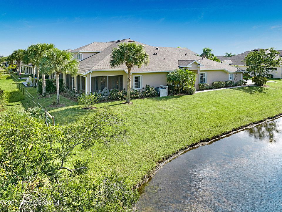 Enjoy WATERFRONT Living in this Tranquil, Spectacular & Superior location with privacy galore on the preserve/waterway & views from every room in your home, all located in Gated Capron Ridge in Viera. Generously sized 3 bedrooms PLUS a den/office flex room with a privacy door separating the main house from guest quarters allow for multi-generational living. Tile throughout living spaces & carpeted bedrooms. You will enjoy the extended trussed screened in porch with wildlife & protected preserves as your neighbor. A well-appointed kitchen, with Gas stove, SS Appliances, island with storage & granite countertops. Fabulous breakfast nook, all open to living - dining floor plan. Primary suite with French doors to the porch, 2 closets, double vanities, shower and soaking tub. Separate laundry room. Easy living in this maintenance free community, extensive community amenities: Gym, Olympic size heated pool, pickleball, tennis, kids playground, fishing docks, trails, parks & MORE