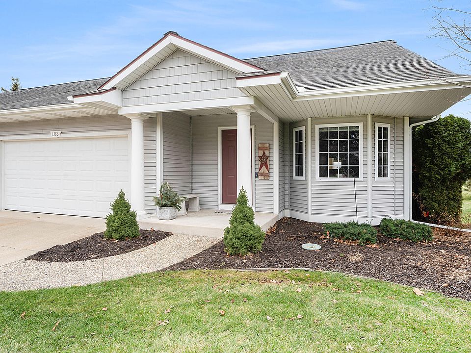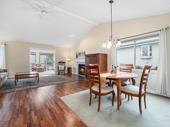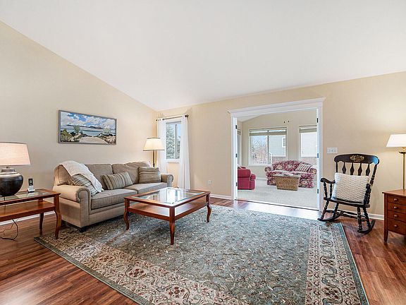 End unit condominium in desirable East Point Ridge community. One of the largest units and one of the few duplex buildings, this condo offers spacious kitchen and dining nook, formal foyer space, dining and living room hosting cathedral ceiling, main floor laundry, 1/2 guest bath, 4 season room plus primary bedroom suite. Primary bedroom bath has had an easy access shower addition with personal shower head. Suite offers walk in closet. Updates include newer stainless kitchen appliances (approx 3 years old) plus washer dryer (approx 2 years old) Kitchen cabinets are light maple, giving the kitchen and nook a light and bright look and exposure for a great natural light. Neutral paint and accent colors create a warm décor backdrop for the condo. Lower level features rec room including piano alcove with space for game table, plus TV and entertainment area. 2nd bedroom and full bath complete the finished areas in the lower level. Unfinished mechanical room has great additional storage space. 2 stall finished garage with water spigot. Ideal location with easy access to highway and downtown. Picture over stairwell will remain. Pets allowed see pet policy in master deed and association notes uploaded in documents buy in fee $500 and questionnaire request will be charged $100 for buyer financing or buyer title company. Monthly dues $210 monthly. Dues cover lawn, snow removal of driveways, sidewalk, association reserves and master association insurance policy. Seller has instructed agents to hold all offers until deadline on Monday, December 19, 2022 at 4:00pm with review soon thereafter. Call agent for details on offer timeline. Seller retains the right to reject or decline to review any offers received after deadline. Ring doorbell will remain.