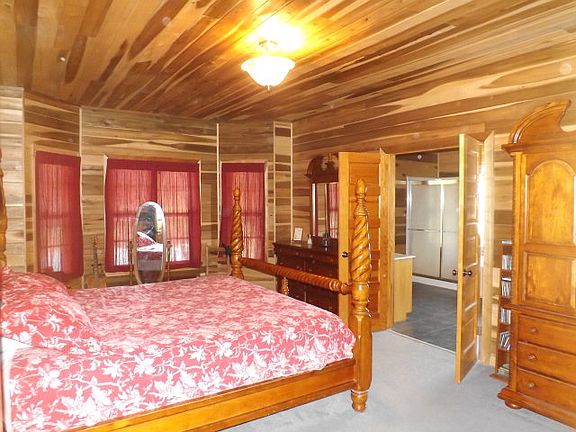 THIS HOME IS ONE OF A KIND WTH BEAUTIFUL POPULAR WOOD WALL'S THROUGHOUT THE HOUSE.LIVING ROOM HAS A FIRE PLACE MADE OUT OF RIVER ROCK AND ALL OF THE CLOSETS ARE MADE OUT OF CEDAR WITH CUSTOM MADE DOORS!!FOUR BEDROOMS,THREE BATHS. MASTER BEDROOM IS LOCATED DOWNSTAIRS AND THE MASTER BATH HAS A GARDEN TUB AND A SEPERATE SHOWER. METAL ROOF,1600 sq.ft. WRAP AROUND PORCH,IN-GROUND SWIMMING POOL AND A TWO ACRE POND.PLENTY OF PRIVACY WITH A REMOTE CONTROL ENTRY GATE TO THE 40 ACRES.