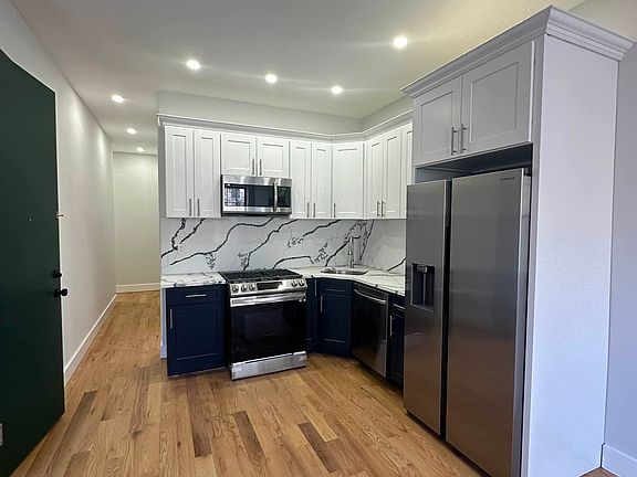 BRAND NEW Luxury 3 BR / 2 Full Baths!! PRIME Bushwick! Unit features Designer European marble kitchen with island, IN-UNIT WASHER/DRYER, stainless steel appliances, DISHWASHER , Direct access to PRIVATE Backyard! lots of closet space, Huge bedrooms, State of the art finishes, Central split heating and cooling, Open air light views, deep marble bathroom bathtubs, SMART home features , hardwood oak flooring, great living dining space, and much more !!. FULLY GUT RENOVATED! Be The first to call this yours! Bushwick is a neighborhood known for its vibrant arts and cultural scene, eclectic mix of architecture, and diverse community. This once-industrial neighborhood has undergone a transformation in recent years, with a thriving community of artists, musicians, and young professionals calling it home. Bushwick is home to a vibrant street art scene, with colorful murals and street art adorning the walls of buildings throughout the neighborhood. The area also boasts a variety of dining options ranging from trendy gastropubs to authentic ethnic cuisine. Bushwick is well-connected to the rest of New York City big apple, with several subway lines offering easy access to other parts of the city. Whether you're looking for a trendy nightlife scene, vibrant arts and cultural events, or a tight-knit community, Bushwick has something to offer everyone. Come experience the unique energy and vitality of this dynamic Brooklyn neighborhood. Secure package drop off, security camera systems, and more! Only Steps away to the L & M train , close to gorgeous parks! Guarantors or welcome ! Pet friendly ! Schedule now to view!