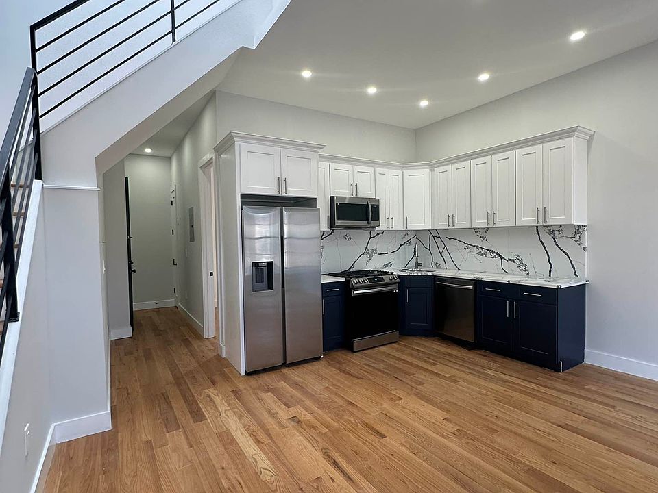 BRAND NEW LUXURY 3 BR DUPLEX + PRIVATE TERRACE! PRIME Bushwick! Unit features Designer European marble kitchen with island, IN-UNIT WASHER/DRYER, stainless steel appliances, DISHWASHER , lots of closet space, Huge bedrooms, State of the art finishes, Central split heating and cooling, Open air light views, deep marble bathroom bathtubs, SMART home features , hardwood oak flooring, great living dining space, and much more !!. Bushwick is a neighborhood known for its vibrant arts and cultural scene, eclectic mix of architecture, and diverse community. This once-industrial neighborhood has undergone a transformation in recent years, with a thriving community of artists, musicians, and young professionals calling it home. Bushwick is home to a vibrant street art scene, with colorful murals and street art adorning the walls of buildings throughout the neighborhood. The area also boasts a variety of dining options ranging from trendy gastropubs to authentic ethnic cuisine. Bushwick is well-connected to the rest of New York City big apple, with several subway lines offering easy access to other parts of the city. Whether you're looking for a trendy nightlife scene, vibrant arts and cultural events, or a tight-knit community, Bushwick has something to offer everyone. Come experience the unique energy and vitality of this dynamic Brooklyn neighborhood. Secure package drop off, security camera systems, and more! Only Steps away to the L & M train , close to gorgeous parks! Guarantors or welcome ! Pet friendly ! Schedule now to view!