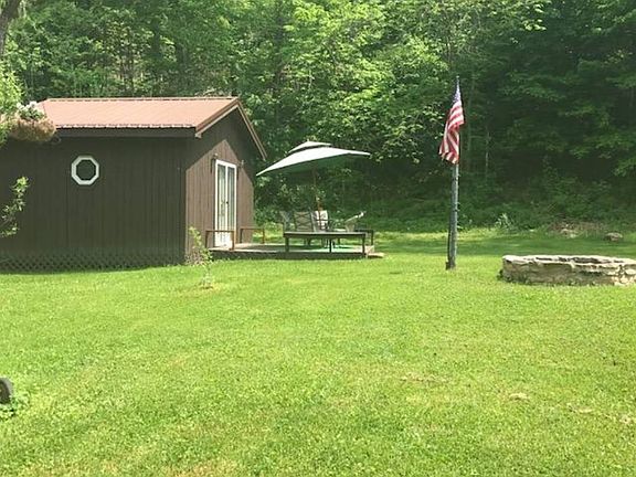 Enjoy this 14.2 acres situated in a valley setting nestled in the hills of Southern Ohio, very scenic location near The Nature Conservancy and Shawnee State Forest, home features cathedral ceiling central air and heat, a kitchen and dining area with a nice fireplace and hearth, 2 bedrooms, 2 decks, a shelter house and picnic area, an outbuilding and a garage, a black top circle drive and mature wooded land with trails for hiking or ATV, and a beautiful flowing stream, abundant with wildlife and nature! Very remote yet does have WiiFii!!