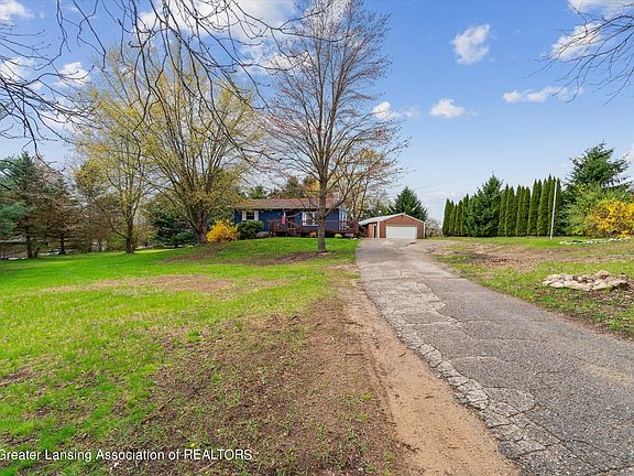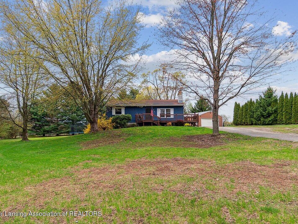 Welcome to this 3-4 bedroom ranch home sitting on 1 acre of peaceful property. Located in Dansville School District, but is also on the Mason Public Schools bus route. Cable internet available! As you walk in, you are greeted with a spacious living room with gorgeous hardwood flooring, an open-concept dining area and large kitchen. Step out onto the spacious back deck with gorgeous countryside views of your backyard. Down the hall there is a full bathroom that was renovated and two large bedrooms, including the master bedroom with spacious closets and hardwood flooring. Downstairs you will find a living room with a wood burner, and two additional bedrooms (one non-conforming) with a walk-out sliding glass door. The laundry is located downstairs and also has an additional toilet in the utility room, making it a ¼ bathroom. Outside you will find a very large detached garage/workshop/barn. Call your Realtor today ~ this won't last long! 1 year home warranty included. All appliances stay.