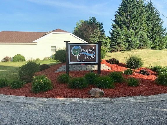 Fabulous Condo at Chapel Creek! Enjoy low maintenance living in this desirable community! This unit offers a great wooded view off of the private patio, soaring ceilings throughout the Great Room/Formal Dining Area. Kitchen comes fully equipped with appliances remaining. 2 Bedrooms & 2 Full Bathrooms, split floor plan. Master Bath has been remodeled with walk-in shower and newer ceramic flooring, also features a walk-in closet. 2 Car Attached Garage. Association Dues are $165 monthly and covers all lawn/snow/exterior roof.