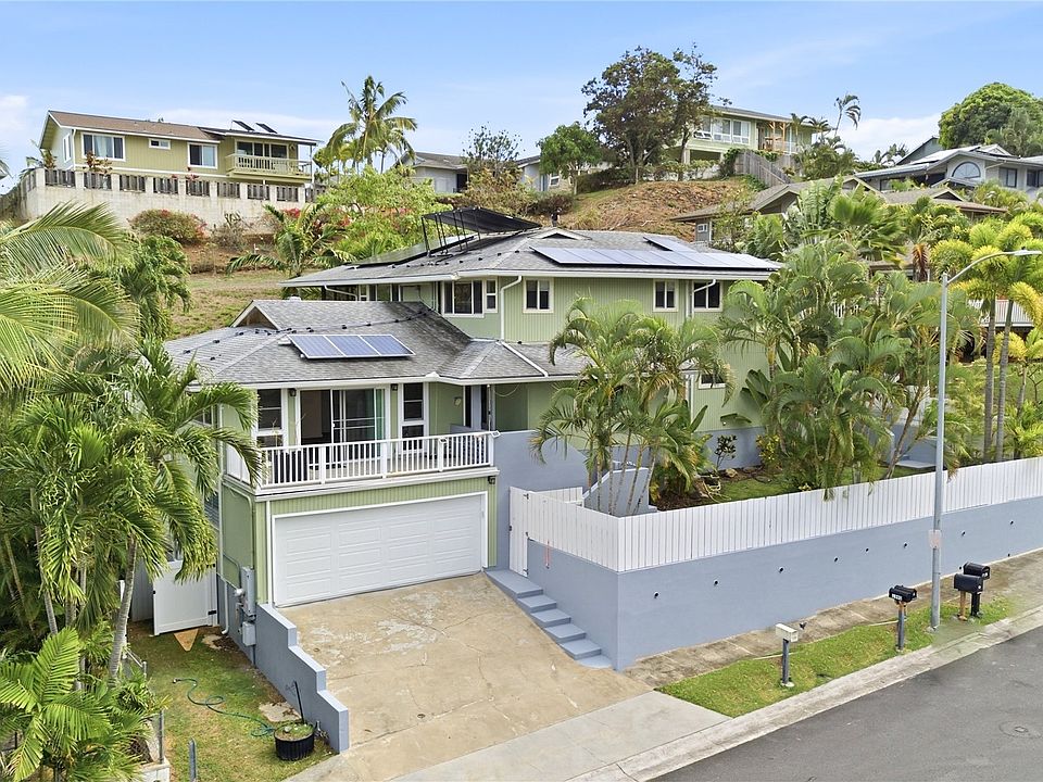 Conveniently located on a quiet cul de sac, yet just minutes away from amenities…if you like Security, Privacy & TONS of space, this is a Must See!! 3/2 Main floor features a deck, large living room transitioning into chefs kitchen w/ island & walk-in pantry + a family room w/ wet bar & laundry room w/ extra storage. Main bedroom includes a tasteful en-suite bathroom & walk-in closet. Outside is a landscaped, fully fenced yard, & a covered patio w/ utility sink. Upstairs living area is substantial & unique. It includes a large office leading to the huge ~750 sqft. bedroom with its own entertainment area & oversized walk-in closet. The bathroom includes dual sinks, vanity, linen closet & open format shower. Sliding doors lead to the fully enclosed ~280 sq. ft. private deck. Truly a one of a kind space. There is a 2 car garage with workshop space & storage, and a total of 5 parking (1 for boat/jet skis). Original construction was done with post tension slabs to ensure structural stability. The home also includes an insulated attic, 4 split ac units, 40 owned PV panels, 3 Tesla batteries & Tesla power charger. Pre-listing Home inspection completed 8/28/2025 with no major findings.