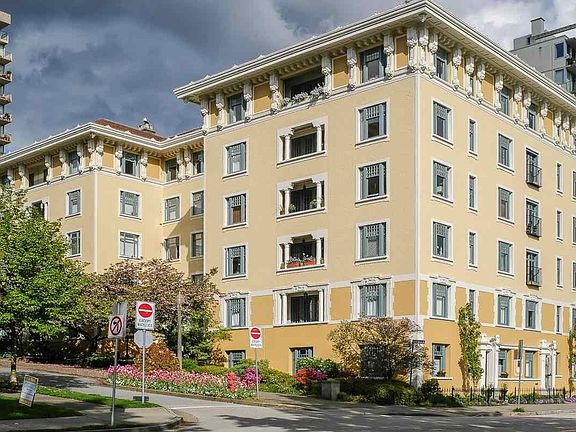 On the shore of English Bay, nestled within the cherry blossoms, is Vancouver's iconic beachfront Heritage building, Kensington Place. This spectacular3200 sf residence combines the classic character of yesteryear with lavish modern luxury. Walking into the home, you will appreciate the size, the detail, the lifestyle of a world class residence. This elegant three bedroom three bathroom oasis within the city offers large formal rooms for entertaining, a gourmet chef's kitchen, two fireplaces, two underground parking stalls and two large storage lockers. Kensington Place has been beautifully maintained and updated with today's modern touches, including electrical, mechanical, and common-area elements. There is nothing else like it in Vancouver--truly an irreplaceable opportunity.