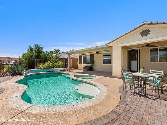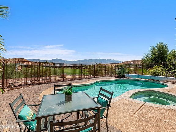 Views, Views and more Views! This Awesome home is located in St. Andrews on the 5th fairway of the Canyons Golf Course. From your swimming pool, hot tub, firepit or patio table, you will be surrounded by panoramic views of the golf course, desert Mesas and beautiful mountains. The kitchen features knotty alder cabinets, granite countertops, a large island for extra work space and seating, stainless appliances and gas oven/range. There is reverse Osmosis as well. The dining area has sliding doors onto the private courtyard with pavers. The master bedroom has window views of the mountains and the Mesa. The master bath features a garden tub, glass shower and dual cultured marble sinks with a separate vanity. This home also has an office/den and Formal living area. The guest bedroom and bath are located at the opposite side of the Master bedroom. This home is just what you've been looking for!