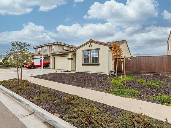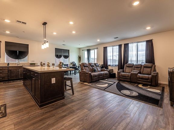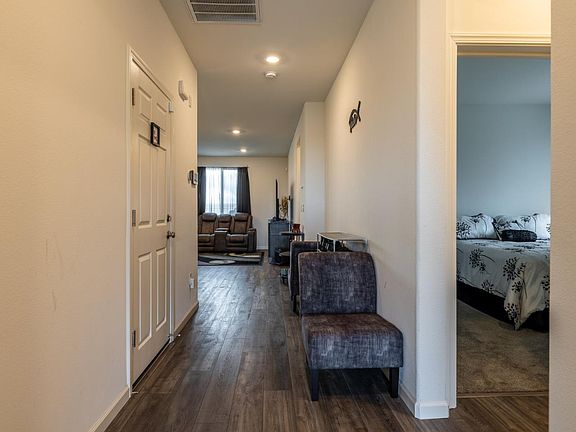 Fantastic Monte Bella home. Only 2 years old. Walk into an open concept living space. Kitchen is appointed with dark beautiful cabinets galore, beautiful bright quartz countertops. 3 nice sized spotless bedrooms. Primary Bedroom and Bath are appointed with top-of-the-line finishes and are a great size. Beautiful Plank flooring throughout except bedrooms with nice clean carpet installed. Backyard is one of the most spacious in the community with green grass and a nice concrete patio. To top it off this home has Solar and Central Air Conditioning for those warmer days. No homes behind for lots of privacy.
