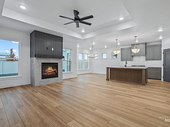 The Weston Gable is a remarkable single-level home situated in Kuna's Cazador neighborhood. This 3-bedroom, 2-bathroom residence boasts an open-concept design that exudes charm. The kitchen is adorned with granite countertops and equipped with a built-in oven, microwave/oven combo, a gas cooktop, and other high-quality finishes. The home is bathed in natural light, creating a welcoming atmosphere. The incorporation of shiplap throughout the interior lends a modern farmhouse feel to the space. Cazador neighborhood offers a country living vibe while maintaining its proximity to downtown Kuna, Meridian, and convenient freeway access. The community features interconnected walking and biking paths, a community pool, and a park, enhancing the overall living experience for residents.This home offers a blend of style, functionality, and community amenities that cater to a comfortable and vibrant lifestyle.