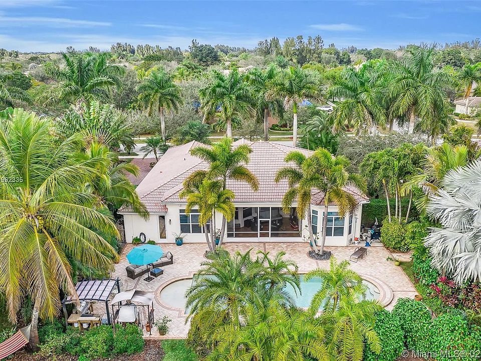 Beautiful home on a builder's acre in Saddlebrook Estates!! This spectacular 4 bedroom home with office has hurricane impact windows and doors throughout, a triple split floor plan and a beautiful kitchen overlooking the pool. The backyard is professionally manicured with over 25 different varieties of palm trees, an electronically controlled pool and spa with LED lighting and an outdoor bamboo shower. Saddlebrook is a private gated community in the heart of Davie. A rated schools and close to highways!