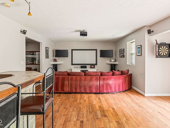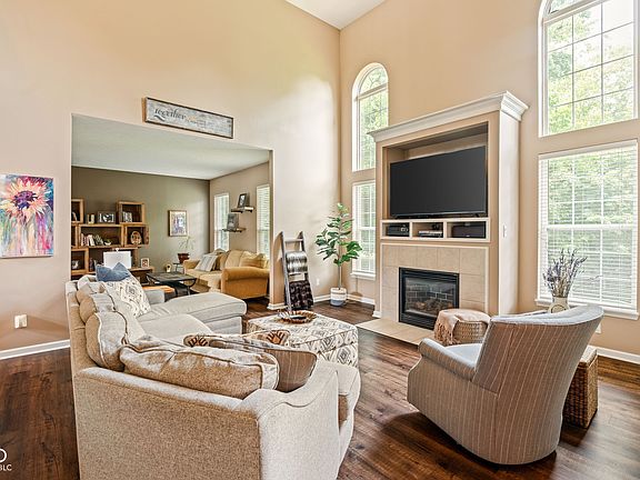 Welcome to your next home in the desirable Haverstick neighborhood, tucked away on a quiet cul-de-sac! This spacious 5-bedroom home offers over 1,500 sq. feet of fully finished walk-out basement space, complete with a bedroom, full bath (with urinal), wet bar, mini fridge, theater screen, and more-perfect for entertaining or multi-generational living. Step outside to your private backyard oasis featuring mature trees, a lower-level patio, and firepit-an ideal space for relaxing or hosting family gatherings while watching kids play. Inside, enjoy the beautifully remodeled kitchen with white cabinetry, a large island with seating, a gas oven/range, and SS appliances. The open layout flows from the eat-in kitchen, formal dining area, and 2-story family room with cozy gas fireplace and large windows. An office with double doors and newer vinyl plank flooring throughout the main level complete the space. Retreat to the large primary suite with vaulted ceilings, space for a sitting area, spacious bath with double sinks, soaking tub and shower, plus a walk-in closet. Upstairs you will also find 3 other secondary bedrooms plus another full bath. Extra large 2-car garage w/tons of storage space. Neighborhood amenities include a pool, tennis/pickleball court, basketball court, and playground-all within the highly rated Carmel Clay School District and just minutes from Prairie Trace Elementary. Enjoy close proximity to multiple parks such as Inlow Park, Prather Park, and Dillon Park, as well as nearby golf courses including Plum Creek, Prairie View Golf Club and Brookshire Golf Club, . A truly unbeatable location with something for everyone! This home offers a lot of space, privacy and perfect location - Schedule your showing today!