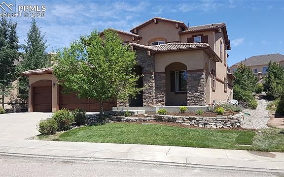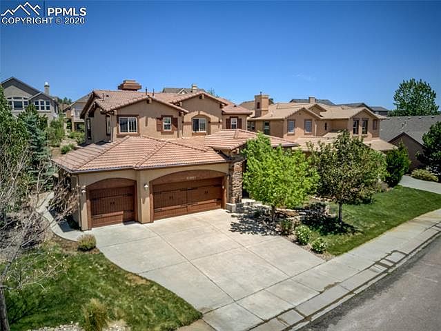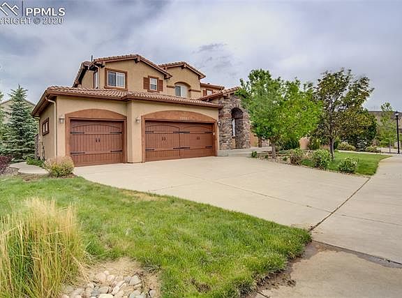 Located in the country club community of Flying Horse, this 2-story is located on a quiet cul-de-sac just seconds away from community trails. Walking distance to D20 Discovery Canyon School. Relax & entertain in this open floor plan with Gourmet Kitchen, Vaulted Ceiling Great Room, & a cozy Fireplace. Walkout to oversize patio w/hot tub connection. Lower level features 9 foot ceilings, with a beautiful full Wet Bar, Fireplace, & Engineered Hardwood Floor. 5-Piece Master Suite & 2 bedrooms upstairs. 4-Car Tandem Garage Private back yard surrounded with tall trees is the perfect place to relax or entertain on the large patio. Office on main level can also serve as a formal dining room if desired. Besides the 4-car garage, there is plenty of storage in the basement as well. New Front Lawn and Shrubs.