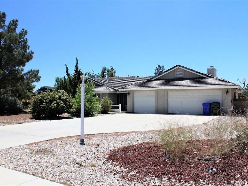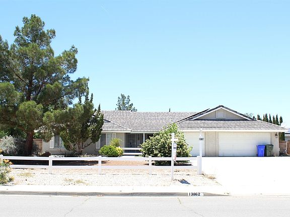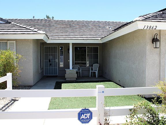 Welcome to 13862 Cochise Rd within the Riverbend Estates and Rio Vista school neighborhood of Apple Valley. Ample in square footage and lot size, this home was built in 1998 and has paid off solar panels! How's that for savings?! This great 4 bedroom 2 bathroom home greets you with front landscaping, a covered porch and a large double gate next to the three-car garage for additional parking large enough for an RV. Upon entry, you'll be greeted by your formal living room and formal dining area upon entry, you'll also notice the vaulted ceilings. To the right you'll find the family room with fireplace, another dining area and your kitchen with a large window facing your covered patio and backyard. To the left of the front entry, a hallway with ample storage will take you to the bedrooms and bathrooms. At the rear of the left side, the spacious master bedroom has an addition right off of the back door. The master bathroom features dual sinks, a large tub and separate shower. Through the master bath, you'll also find a spacious walk-in closet with shelves for organization. The backyard features a covered patio, mature trees, storage shed and artificial turf with a fountain.