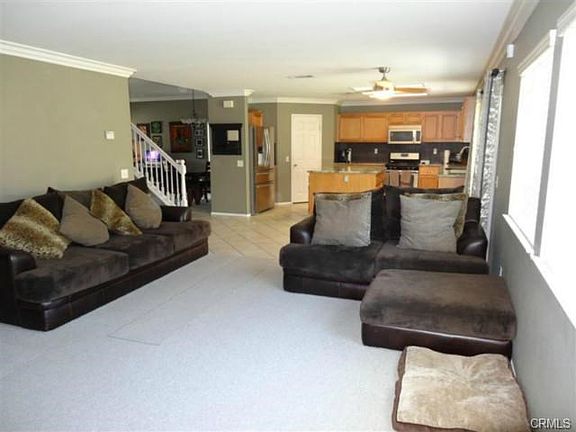 Wow! Wow! Wow! Highly Upgraded Eastvale/Corona Home Boosts 4 Bedrooms / 2.5 Bathrooms...Gorgeous Home... Large Family Kitchen has been remodeled with Granite Counters, Large Pantry, Island, Opens us to Large Family Room with Custom Builtin TV Cabinet, Fireplace, Upgraded Bathrooms, Large Separate Livingroom, Large Bonus Game Room with Wood Laminate Flooring, Separate Office Area off Bonus Area, Large Master Bedroom with Separate Master Bath with Dual Sinks, Large walk-in closet and separate Tub and Shower, Double Paned Windows with Triple Paned Windows on Upstairs Back of House, Central Air/Heat, Berber Carpeting, Crown Moldings, Ceramic Title, Separate Inside Laundry Room, Custom Interior Painting, Ceiling Fans, Covered Front Porch Area, 3 Car Garage with Direct Access to Home, Newly Landscaped Backyard with Grass, Covered Patio Area... Close to Schools, Shopping & Local Freeways...This is Must See.... Your clients will love it...