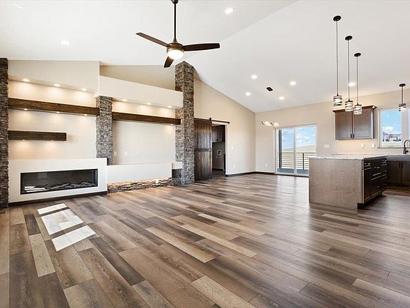 Indulge in luxury living at this custom-built 5-bedroom, 3-bathroom home set on 1.5 acres of pristine landscape. The front door opens to an open floorplan that boasts souring ceilings where you will see a living room with a fireplace and custom built-in shelves. The kitchen includes granite countertops, walk-in pantry and accent lighting above and below the cabinets and a large granite-topped island. Slide the barn door open and you will find the main floor laundry room that includes a sink and cabinets. The walk-out basement includes two bedrooms, a gas fireplace with built-in shelves and a wetbar that includes a sink and granite countertop. The spacious three-car garage is finished with a gas heater and hot/cold water spigot. Listed by Matt Newton, Keller Williams Realty Black Hills 605-545-4248. Contact your favorite Agent to schedule a private tour.