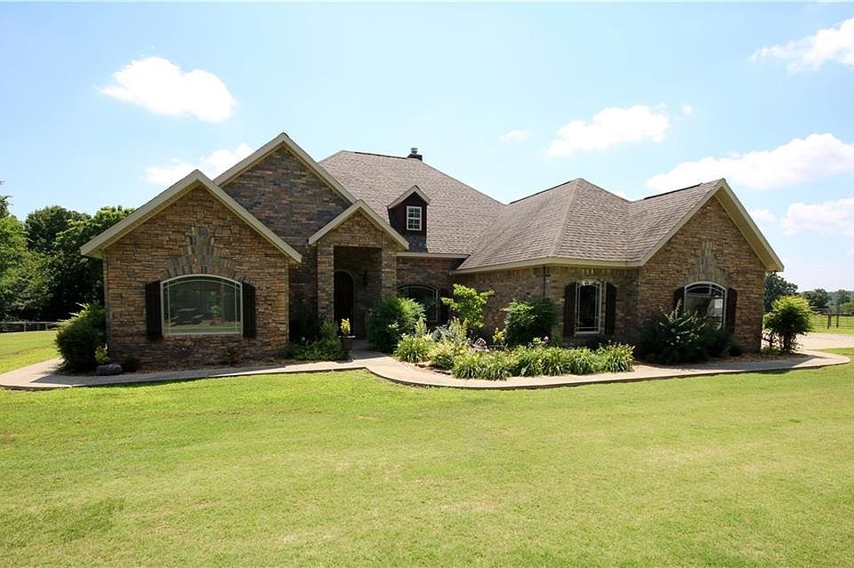Amazing custom 4 bed/3 bath brick home just 15 minutes from Fayetteville w/ separate dining/office, XL eat-in kitchen w/ gathering island & stainless, arched windows, lg open family rm w/ statement fireplace, laundry+mud rm+ample storage. Farm perfect for running horses or cattle. Lg custom shop w/ tack rm, 2 large hay barns, rolling terrain w/ lg open pasture & hardwood bottoms (walnut trees), riding arena, spring fed creek+water stations, fencing/cross fencing, corral/chute, loafing sheds & pole barns.