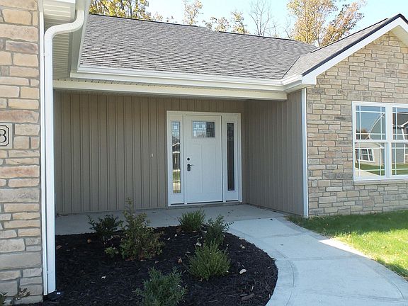 Another exceptional quality built Tom Schmucker spec. home in Grand Pointe. This split 3 BR plan offer a very spacious GR with 10' ceiling and nice special ceiling effect in the dining area, open kitchen with custom cabinetry, hard surface tops, large center island and walk-in pantry. Master BR has a trey ceiling, with a tiled Master bath shower and double vanities. Home has a separate laundry room with cabinetry and a utility sink all behind a pocket door. High Efficiency Gas F/A and Central Air. Home also features a covered porch that is footered and screens or windows can be installed for a 3 season room. The large garage features natural light and a pull-down attic stairs to a floored attic area. Exceptional quality & workmanship! Home is completed and lawn being planted the week of Sept. 18th.