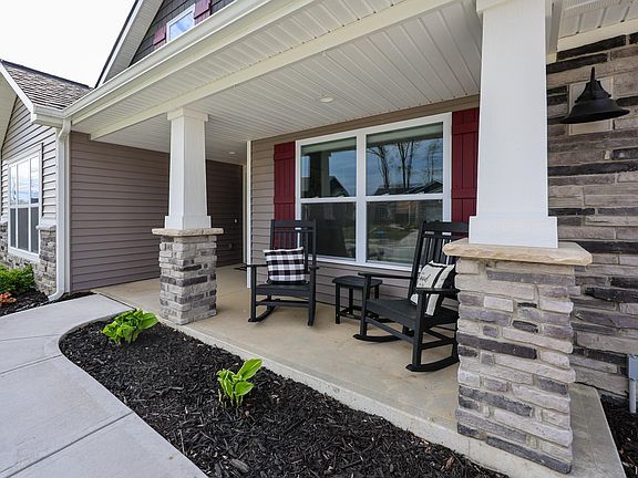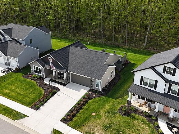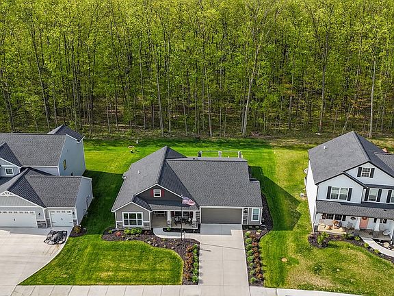 Beautiful ranch home with premium upgrades with a woods view for sale!!! 3 bedrooms, 2 full baths, open concept layout, custom batwing island with ceramic sink, large corner pantry with microwave, upgraded copper ridge cabinetry with under cabinet lightning, GE smudge proof slate appliances, direct vent gas fireplace, Bali blinds throughout, dimmable lighting, private patio for primary suite, extended patio from living room, data and coax wired throughout home, custom shower glass from ONeil's, Trinity Home Center Lighting Fixtures, Oversized 2 car garage with added windows and blinds and utility sink, security system. This well kept and friendly neighborhood is great to take a stroll along the sidewalks! Close to many amenities including shopping, trails, restaurants, and businesses!