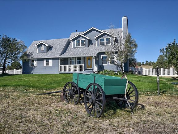 Beautiful and comfortable home complete with the white picket fence and inviting front porch. Conveniently located across the street from Latigo Trails Equestrian Center. The Location that is every horse owners dream. Recent updates of a New roof and New carpet. This 4 bedroom, 3 bathroom home has a remodeled kitchen with solid surface counter tops, soft close Shenandoah cottage white cabinets, breakfast nook, double oven and island. Dining room flows into the warm and inviting living room where there is a relaxing floor to ceiling custom stone fireplace. Laminate floors on the main level make for quick and easy clean up with kids and pets. Cozy spacious Master suite with sitting area, walk in closet and attached master bath. Secondary upstairs bath has an air tub to soak and relax! Two more bedrooms on the this level complete the upstairs. Down to the basement you will find a huge family room, large bedroom and full bath. Perfect for guests or that independent kiddo. Bath has heated floors to keep your feet comfy cozy! Head outside to enjoy your 2.63 acres complete with a 4 car oversized detached garage and 3 Stall barn w/water and electric. Conveniently located only 10 minutes to Falcon and 20 minutes to Colorado Springs. Close to schools, hospitals, shopping & dining but far enough away to give you the privacy of country life. Leave the world behind when heading home from the day. Definitely worth taking a look at so come experience it today!
