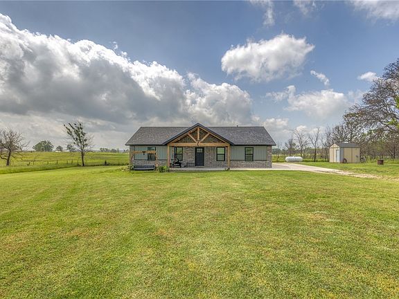 Welcome to this beautiful custom-built in 2023, 3 bedroom, 2 bath home nestled on a peaceful acreage just off HWY 116- offering an easy commute in any direction. This home is ideal for families seeking space, comfort, and the tranquility of rural living. Inside, you'll find an open concept layout featuring durable vinyl flooring, granite countertops, and a spacious kitchen with stainless appliances and a large island prefect for barstools and casual family meals. The kitchen flows seamlessly into the dining and living areas, creating an inviting space for entertaining and everyday life. Primary is oversized; includes huge walk-in closet and bathroom has walk-in shower featuring beautiful tile work. A large utility room located just off the paved carport adds convenience and functionality. Enjoy relaxing mornings or evenings on the covered front and back porches, surrounded by the beauty of nature. The property includes pastureland and a pond, ideal for those looking to create a hobby farm. Long driveway.