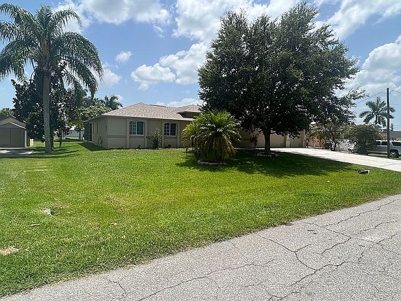This beautiful 4 bedroom, 3 bathroom home is absolutely STUNNING and a MUST SEE! This home is 4 bedroom 3 bathroom with large pool and GIANT 3 car garage with attic access. This home has beautiful green floratam sod with updated WIFI irrigation system! Beautiful River Forest community is kid friendly and has events go to along that are planned. All with NO HOA FEES! This beautiful home also has a brand new roof and a new air conditioner! Electric davits are out back to lift your boat or jetskis into the water for DIRECT WATERWAY ACCESS to the CALOOSAHATCHEE RIVER! THIS HOME IS AN ABSOLUTE MUST SEE!