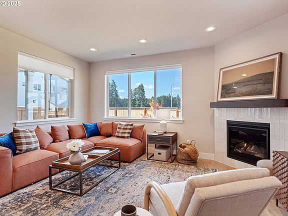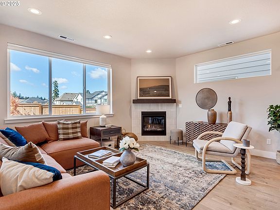MODEL HOME! This home has all the options: AC, up/down blinds, refrigerator & design selections! Lot 40 at Scholls Meadow by Riverside Homes is the 2466 plan with 5 bedrooms including a MAIN LEVEL bedroom and full bathroom ideal for guests or multi-generational living. Bright, open layout in the living spaces including great room with gas fireplace, dining room with sliding door access to covered patio, and a spacious kitchen with gas range, island, quartz and walk-in pantry. White Cabinets throughout. Bonus loft upstairs makes a great media room or workout space. Luxurious primary suite includes tiled shower and soaking tub, double vanity, and huge walk-in closet. Traditional two car front load, attached garage with driveway and on street parking. Fully fenced and landscaped backyard with gate. Popular Farmhouse exterior. Must see to appreciate the style, beautiful finishes, and functionality of these homes! Photos and video of similar home. Open Thurs-Mon 12:00-5:00pm (13867 SW 172nd AVE)