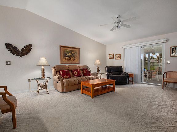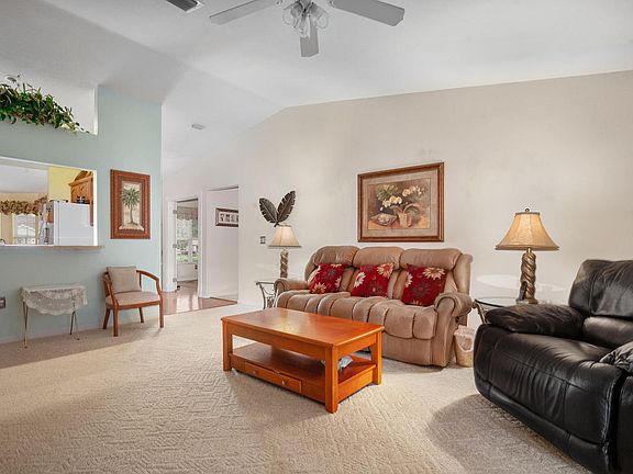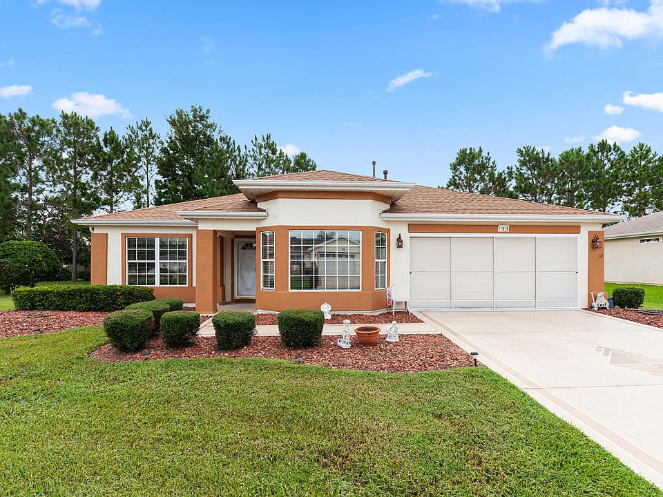 POPULAR DESTIN MODEL IN DEL WEBB'S SPRUCE CREEK GOLF & COUNTRY CLUB. This pristine 2/2 plus den home has nice views from the enclosed lanai. French doors on den. Screen on garage door, storm door on front entry door, painted driveway and more - great opportunity. Some furniture may be available. Monthly HOA of $129.00 includes security, common area maintenance, trash removal and use of the amenities.
