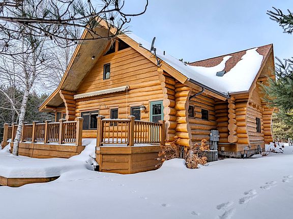 Have you been waiting for a log home nestled among 7.7 Acres of wooded privacy a block away from water? This spacious 4 bedroom, 2.5 bath Swedish Cope style log home has been well maintained & has many features & updates to appreciate! Rare find in Pillager school district, this parcel has 12 minutes of walking trails throughout, tons of perennial gardens, 1.7 Acres fenced yard, paver patio and firepit area with pergola, replaced deck boards on 2 tiered deck, pollinator gardens, extra detached garage ideal for a workshop, 5-6 cords of wood that can stay and screen porch! Inside continue to be impressed with 2 fireplaces, vaulted living room with tons of natural light, spacious primary bedroom suite in lofted upstairs, Ash hardwood floors, newer microwave & range, main floor laundry and walk-in pantry, office or main floor bedroom option, full finished basement with family room, tons of storage and much more!!