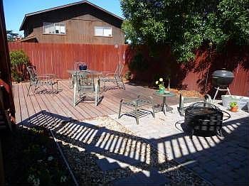 COzy and Charming, Light and Airy! Open Beam Ceilings, Free standing Fire Place, Nice Deck off of Kitchen, Private Deck and Patio Backyard, Tile Kitch