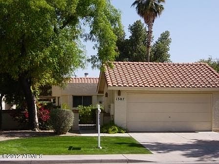 Very clean, comfortable home in wonderful condition. Home has an eat-in kitchen and dining area, fireplace, and ceiling fans throughout. The second bedroom has a walk-in closet and it''s own bathroom access. Beautiful, shady yard with patio. HOA takes care of yard in front of fence. Refrigerator included in the rental. View of large park from front of home. Items updated since 2010 include A/C, Water Heater, Garage Door Opener, Landscaping and Drip System. $50 PER MONTH DISCOUNT FOR 2-YEAR LEASE!