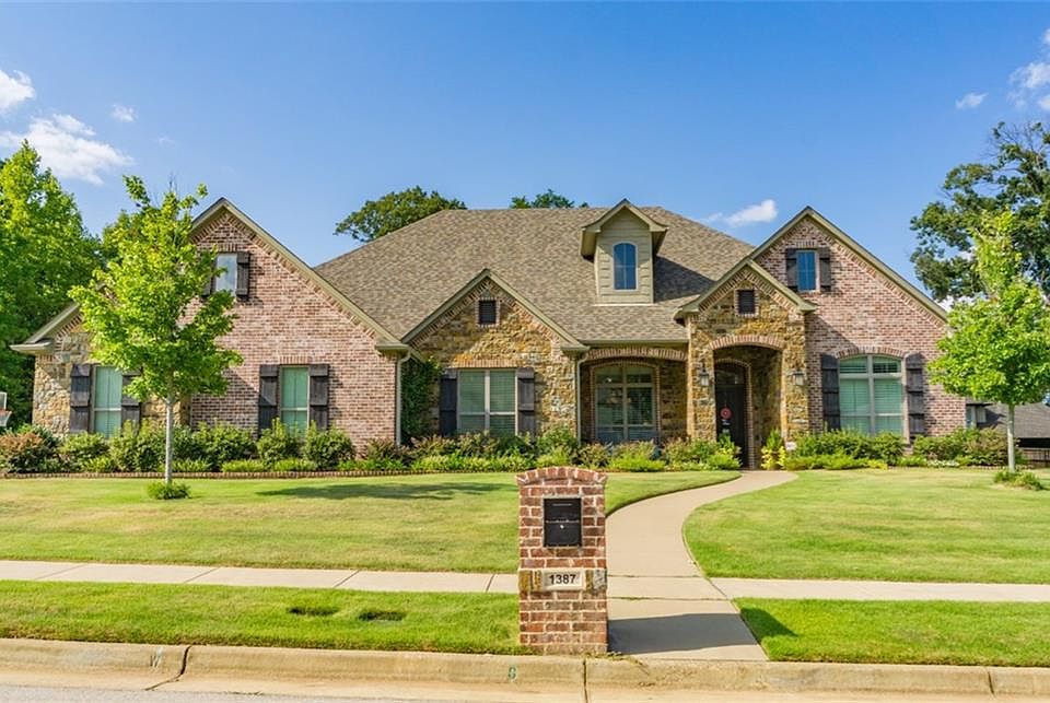 Stunning custom home in highly sought after south Tyler location welcomes you home with lush landscaping & front porch. An open, spacious, airy concept greets you with high ceilings, extensive trim work & beautiful finishes throughout the dining, living, casual dining & kitchen. Gourmet kitchen awaits with double ovens, gas cooktop, granite counters, walk-in pantry, island with breakfast bar & more. Guest bedrooms 2 & 3 share access to Jack n Jill bath. Guest bedroom 4 offers private bath. Luxurious master retreat boasts separate vanities, soaking tub, double shower & walk-in closet. Solid surface flooring throughout. Fully fenced backyard, covered & uncovered patio & firepit plus slab for trailer.