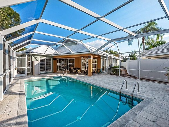 Impressive extremely well maintained, 3 B/R, 2.5 Den POOL HOME w/auto fill on a cul-de-sac in the private enclave of Willow Bend in the sought after Gated Naples Community of Sterling Oaks. Great vacation or family home...just minutes from the Gulf of Mexico! This peacefully located home has an open floor plan with cathedral ceilings,porcelain tile, plantation shutters, a pool bath, and an large family/dining area with easy access to the backyard, pool/lanai. Eat in Kitchen with stainless steel appliances, solid surface counter tops, breakfast bar, extra cabinets and built in desk. Large master suite with pool access, soaking tub, walk-in shower, dual vanities and walk-in closet. All of the bathrooms have been updated. BRAND NEW ROOF, A/C only 5 yrs old, hot water tank 3 yrs. Sterling Oaks offers an array of activities and amenities, which include; a newly renovated clubhouse and dining room, 12 professional Har-Tru tennis courts, Jr. Olympic heated pool, hot tub, cabana bar,fitness center with locker rooms and sauna, pickleball, bocce, basketball, tot-lot, 24 hour manned gate, pet friendly, side-walks, street lights, mature and well maintained landscaping, and more!