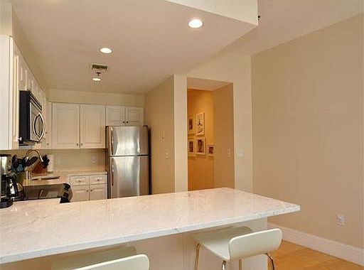 Stunning, renovated South facing corner unit in the Washington Union building. This particular floor plan is rare to market and ideally laid out, ample square footage and one floor sophisticated city living. Chef's kitchen with gorgeous Carrera marble counter tops, stainless steel appliances and enlarged breakfast bar. South facing windows wrap the entire open plan living/dining/kitchen overlooking Union Park St and the Cathedral, perfect for entertaining. Beautiful maple hardwood floors. Two generously proportioned bedrooms, suitable for king or queen beds, with large closets. Two full, renovated baths complete the space. All this and central a/c, in unit washer/dryer, elevator and professional management. Prime South End location, on the corner of Union Park St and Washington, steps to all the best restaurants, shops and soon to arrive Whole Foods retail expansion. Easy rental parking or parking available for purchase (see MLS 71621723)