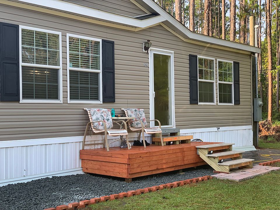 Own a piece of the country with this immaculate home built in 2010 on 1 Acres of property. This home is located on a paved road and features almost 1200 LSF 3 bedrooms, 2 full bathrooms, split floor plan, newly renovated master bathroom, open kitchen and living room. LOTS of upgrades, water softener system and reverse osmosis water filtration under the sink. Newly constructed front patio, upgraded breaker box, additional 20amp/120v outlet installed 50 amp/120v installed in rear (RV Connector) RV Hook up to main septic tank. There is also a brand new 400 sqft a/c storage building that can be easily converted into a tiny house, mother-in-law suite or rental property the possibilities are endless. BRING your RV, BOAT, and all of your TOYS. Very close to fishing and hunting ground, 30 min to the beach. This home won't last long make your appointment today!