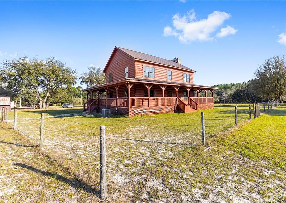 Beautiful, custom log cabin built in 2008 featuring 3 bedrooms and 2.5 bathrooms overlooking 32+ aces in scenic Fort Mccoy, Florida. Property features two additional, expansive outparcel/multi-use buildings. The possibilities are endless. Zoned A1.